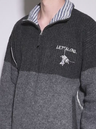 猫の刺繍が施されたハーフジップニット。